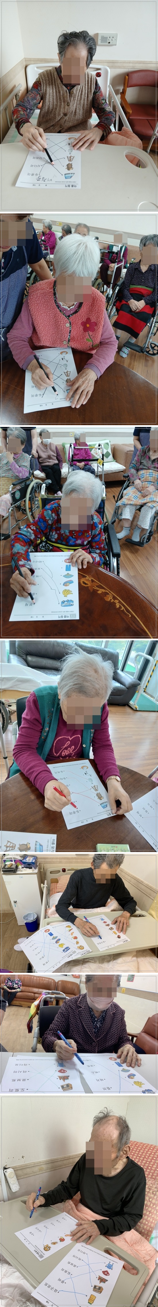 인지기능 프로그램으로 한글공부를 진행하여,